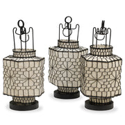 Ces grandes lanternes de forme rectangulaire sont fabriquées à la main avec un cadre décoratif en fil métallique et un abat-jour en toile blanche. ...