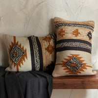 Like the rest of the Tussi collection these adorable rectangular cushion covers are made from a mix of wool and cotton. With its natural background and Ikat design in bold mustard and grey hues. Filler sold separately.