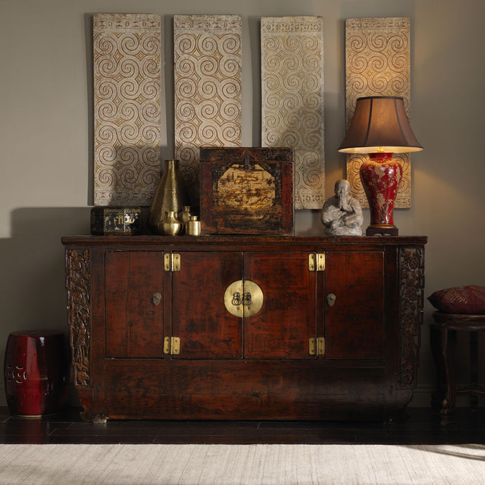 These traditional carved panels are based on ancient carvings produced by the Toraja people - an ethnic group indigenous to the mountainous region of South Sulawesi in Indonesia. Sold as a set of four, they make a great way to add interest and character to an interior wall. The price shown is for the full set of four panels.