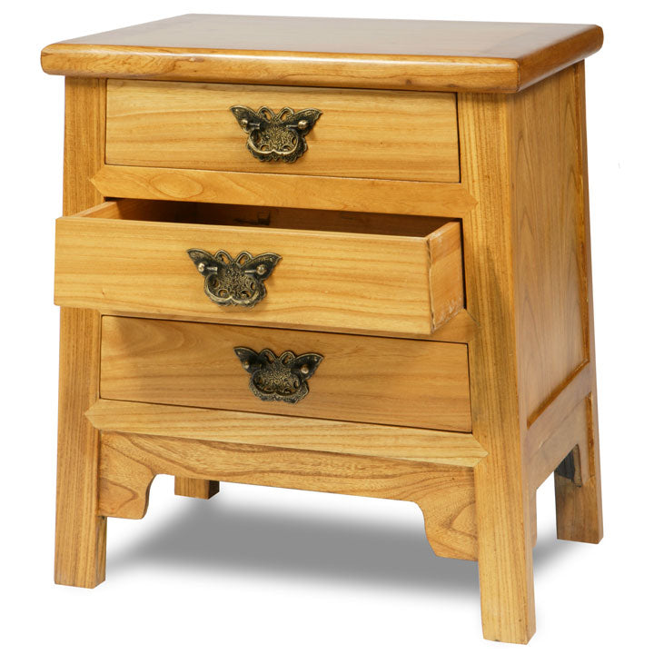 Chinese altar tables, like our warm elm version seen here, were actually used not just for holding offerings to ancestors, but also as more general surfaces to display flowers, vases or other prized possessions. Our version is smaller than most original altar tables, making it more practical in a modern western home, but is in a classic design with wonderful carvings at the top of each leg. The carvings show scrolling 'chi' dragons - a common motif on furniture of the Qing dynasty. The raised, wing-like 'flanges' at each end are typical of furniture used throughout China for a religious purpose. Available in warm elm to show the rich grain of the elm wood, or in our dramatic black lacquer.