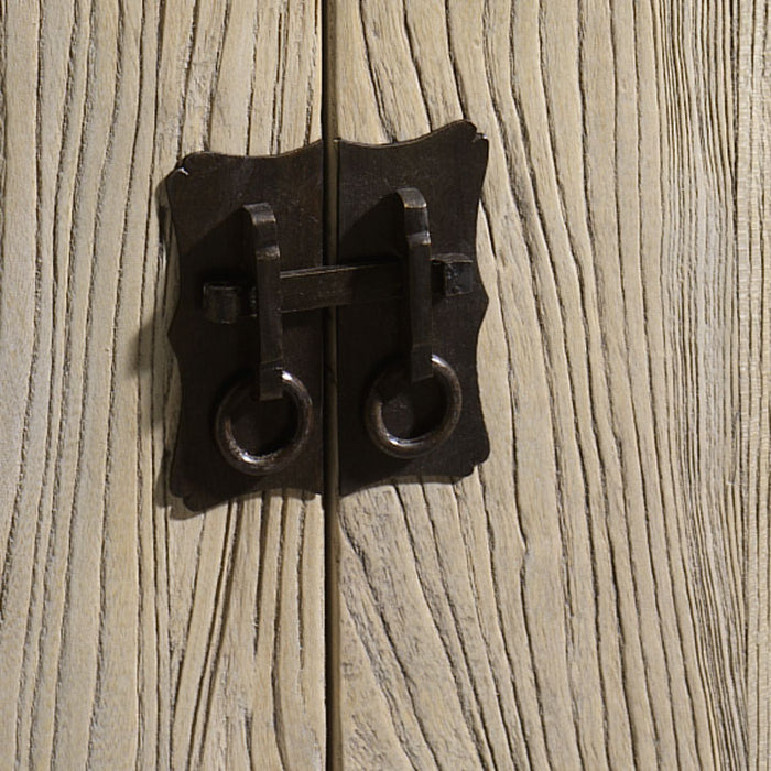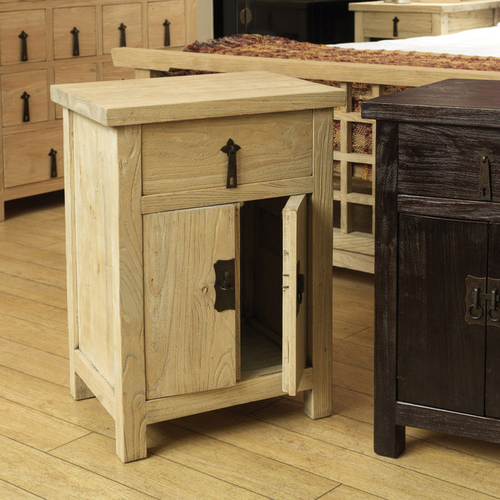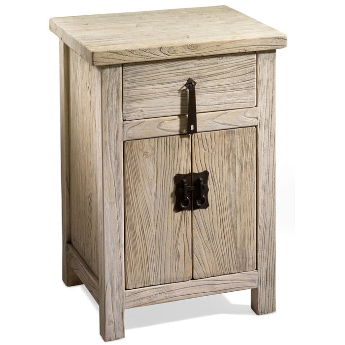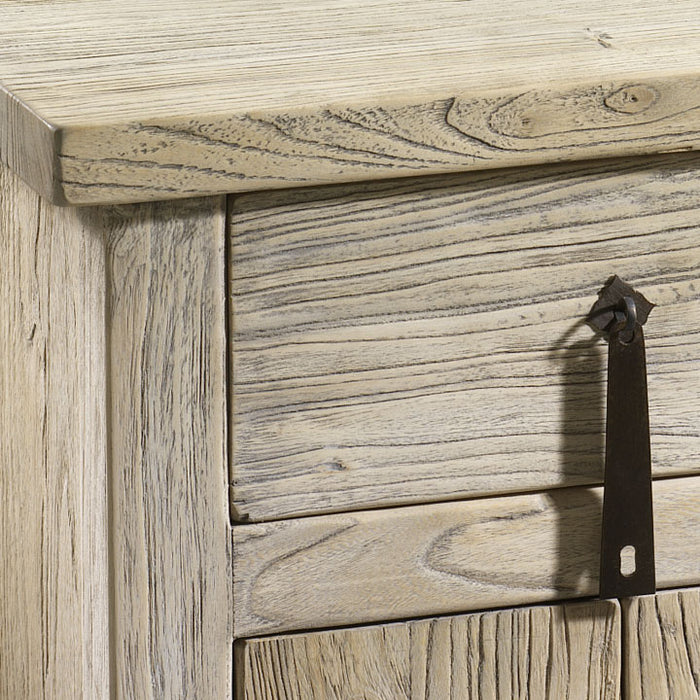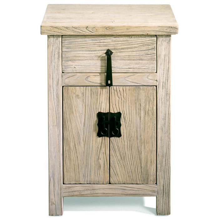 This little cabinet is perfect next to a bed or used as a side table. The style is again very simple, the doors fitted directly into the cabinet frame and with a single drawer above. The blackened brass hardware adds a decorative element to the otherwise stripped back look. As with other pieces in the range, the finish is as close to the natural colour of the reclaimed elm wood as possible and the wood is worked to enhance the beautiful, wide grain.