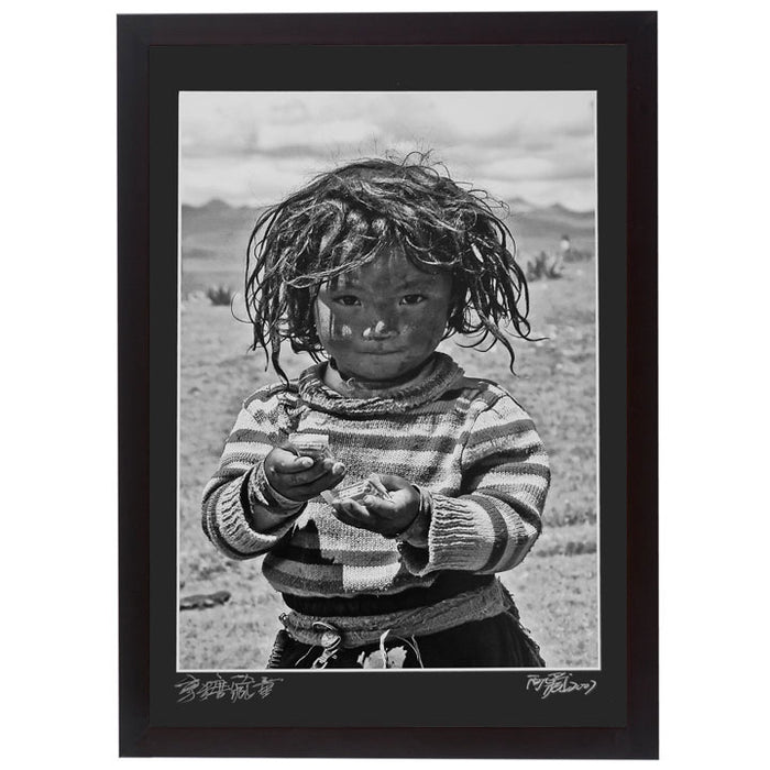 Our framed black and white prints show children from around China, taken by a Beijing photographer. Each print is supplied in a simple black frame as shown.