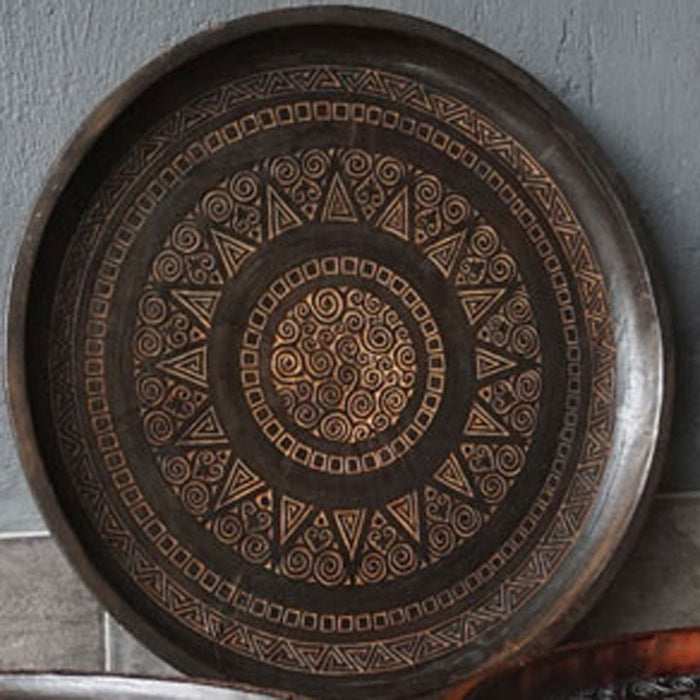 These wonderful circular wooden trays are handcarved and are decorated in traditional Indonesian geometric patterns. As each piece is unique the design and colour may vary to those pictured.