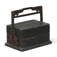 Once used to carry food, this charming box is in its original black lacquer finish, with details on the handle picked out in red. It comes from Shanxi in central China and dates from the late 19th century. It has a removable lid and still shows the old iron hardware on each edge. An interesting storage box that is large enough for use a magazine holder.