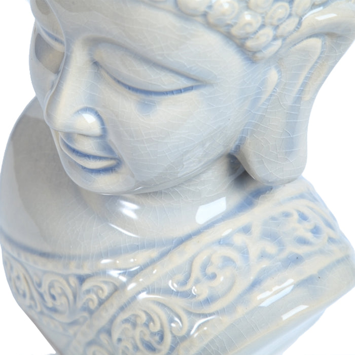 Create a calm and harmonious atmosphere in your home with this elegant Porcelain Buddha Head. Finished in a soft ivory glaze with subtle crackle detailing, this beautifully crafted piece captures the serene expression of the Buddha, symbolising peace, mindfulness, and spiritual balance.