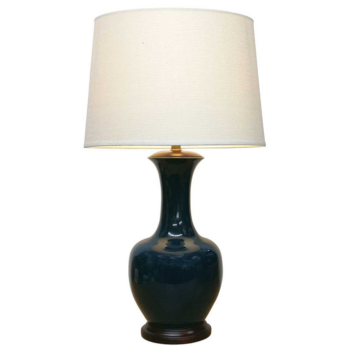 This gorgeous tall bottle lamp has a luxurious deep teal glaze finish. It is mounted on a hardwood base and is supplied with a textured ivory-coloured styrene backed fabric shade. 60W max B22 bulb. Overall height is 72cm including shade.