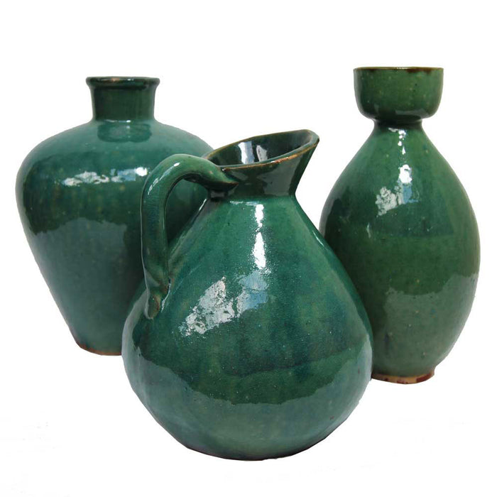 Green Ceramic Wide Shoulder Vase
