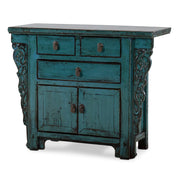 Crackled Blue Vintage Chinese Cabinet with Flowers