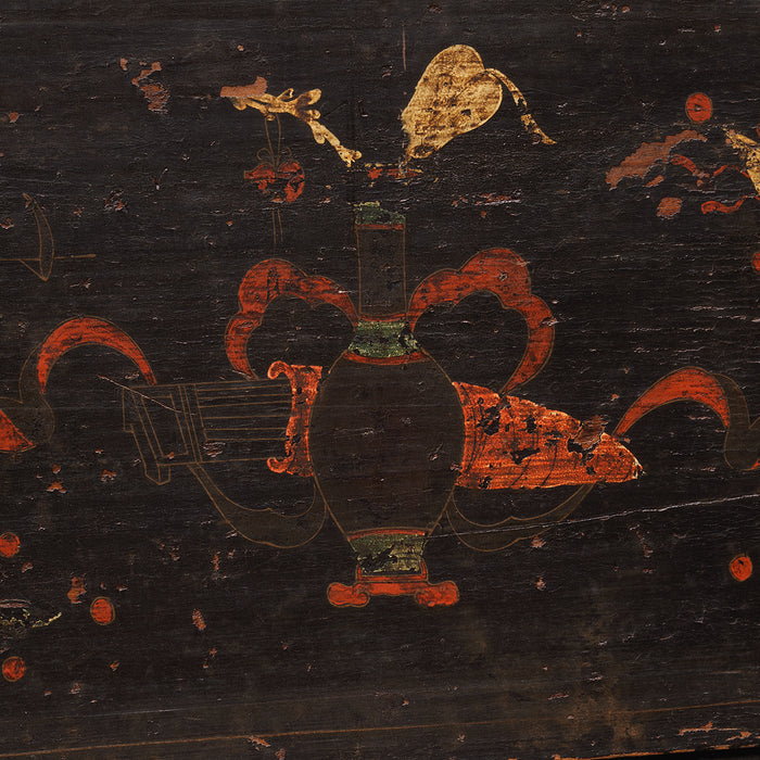 Originally intended for storing household valuables or textiles, the cabinet lends itself effortlessly to contemporary use. Today it would make an elegant statement piece in a living room, dining room or hallway, ideal for storing books, tableware or personal items. Its richly decorated doors also make it suitable as a focal cabinet in a bedroom or study, where it can be appreciated both for its practical storage and its painterly surface.