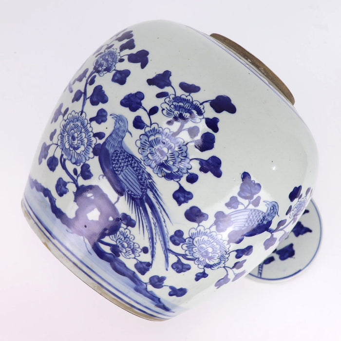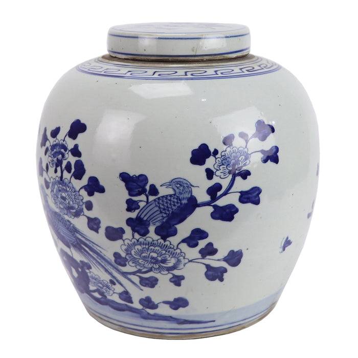 Originating from Jingdezhen, the world famous centre for Chinese porcelain and home to the imperial kilns of the Ming and Qing dynasties, these large ginger jars boast a traditional blue and white pattern, inspired by timeless designs. Historically, they served as containers for precious goods such as ginger, and each jar features hand-painted auspicious birds and flowers in a deep cobalt shade. The intricate decoration includes a golden pheasant, symbolizing power and influence. Handcrafted from superior porcelain, these jars are a true testament to the exceptional skill of the region.