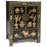 The doors are set directly into the cabinet frame with wooden pegs rather than on metal hinges, providing a simple surface for the decoration. The cabinet has a single, removable shelf on the inside. Please note that the painted designs can vary slightly as each cabinet is decorated by hand. Also available in red lacquer.
