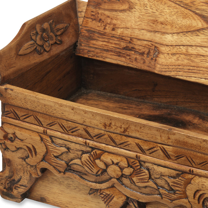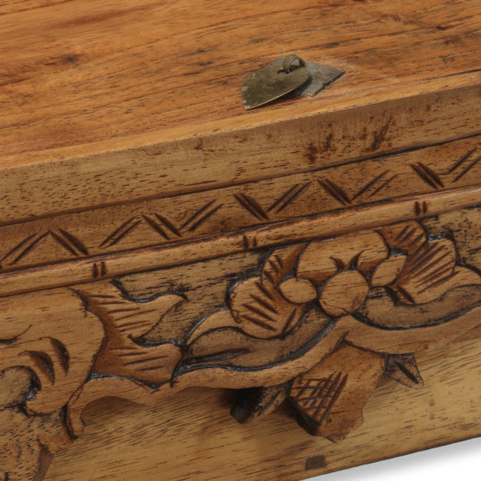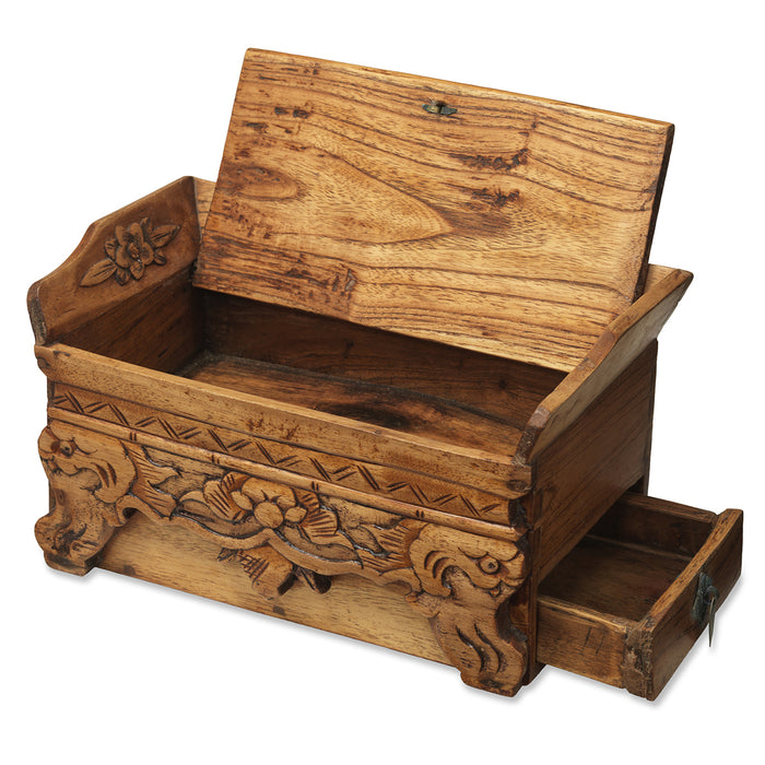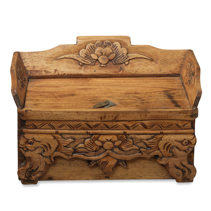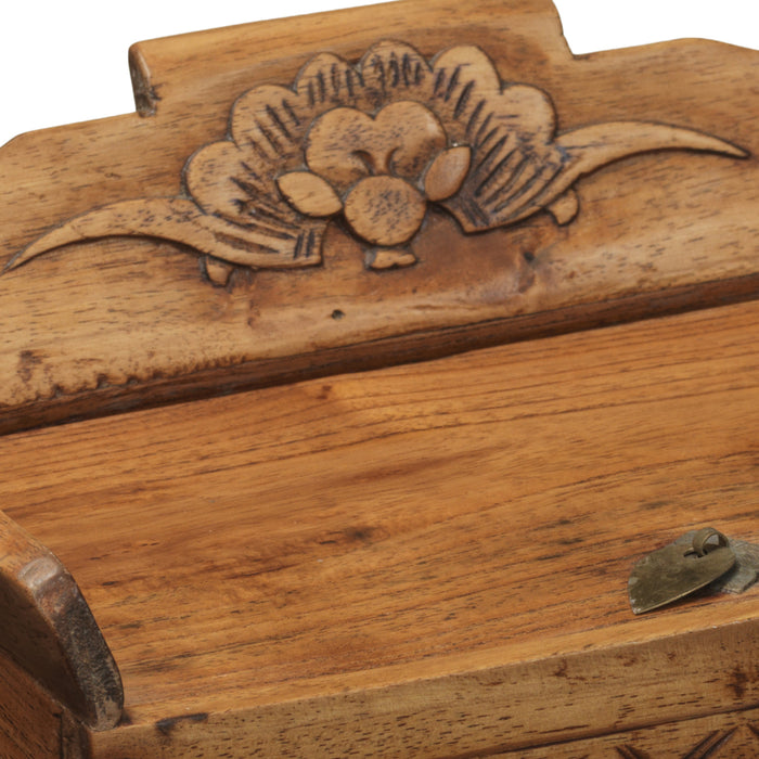 This little wooden box features some lovely carved detail on the front and has a removable lid and shallow drawer at the side. It was used originally to hold jewellery and would still make a lovely jewellery box today, or use it to store other smaller items. It comes from Zhejiang province in eastern China, where is was made around the early part of the last century.
