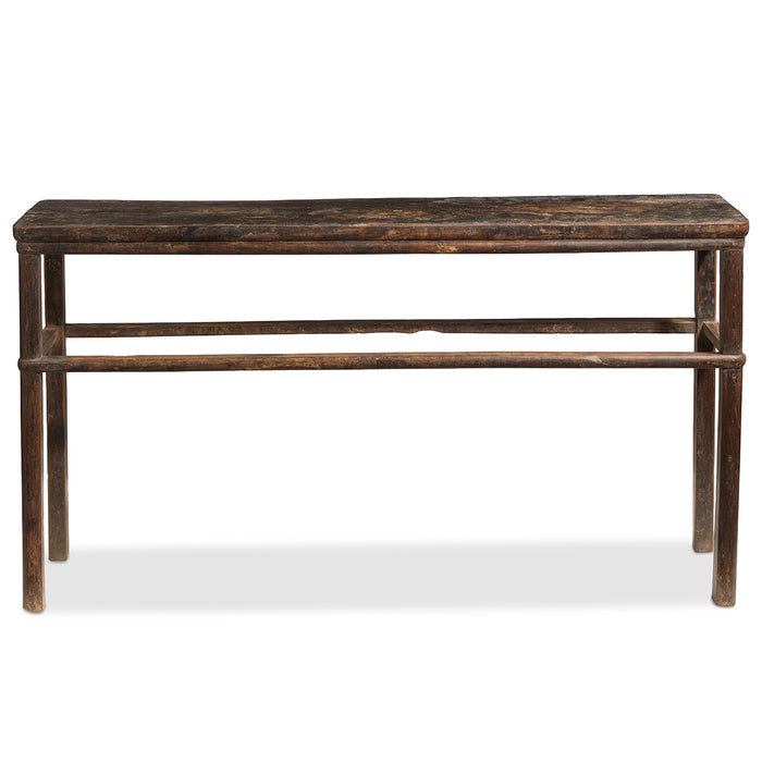 This elegant antique table from Shanxi province dates to around 1860 and embodies the quiet strength and restraint of traditional northern Chinese furniture. Crafted from solid walnut, it features a long, slender silhouette with clean lines and a well-balanced frame, designed to be both practical and enduring.