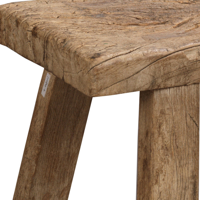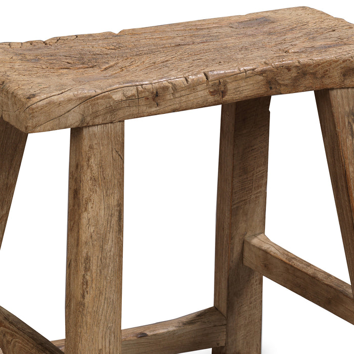 This simple elm stool represents centuries of Chinese design tradition, made with mortise-and-tenon joints and splayed legs supported by single stretchers for durability. The wide seat surface has a lovely, weathered look and makes the stool ideal either for seating or as a practical side table next to a bed or sofa. It's portability makes the stool highly versatile to be used as needed, even outdoors during the summer months.