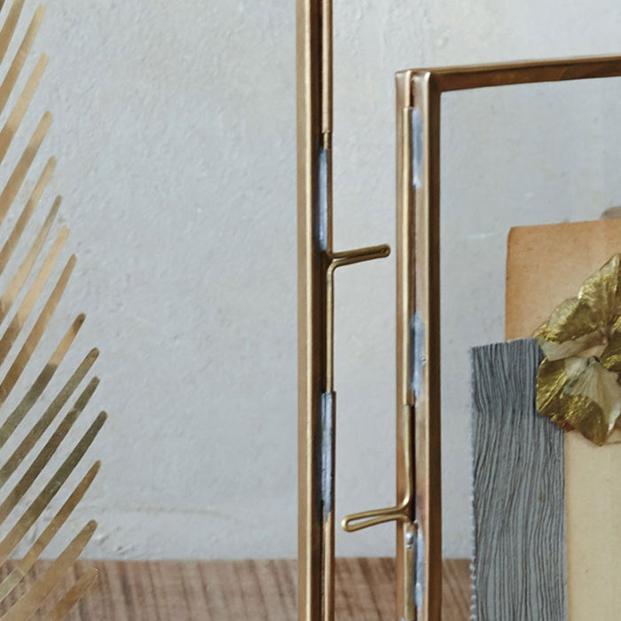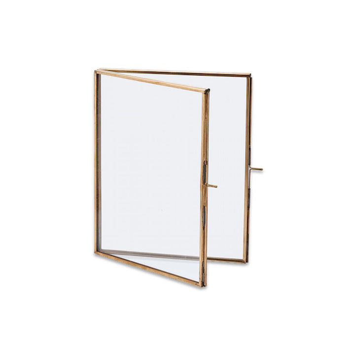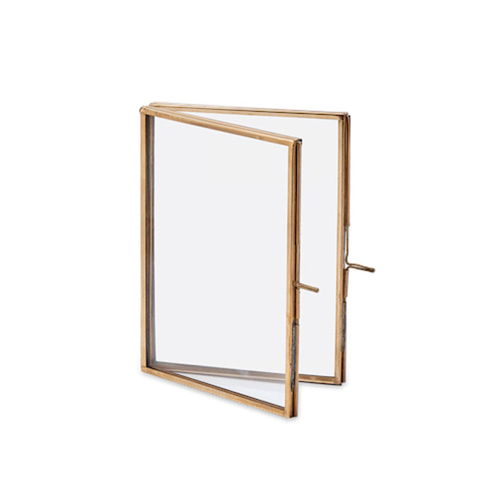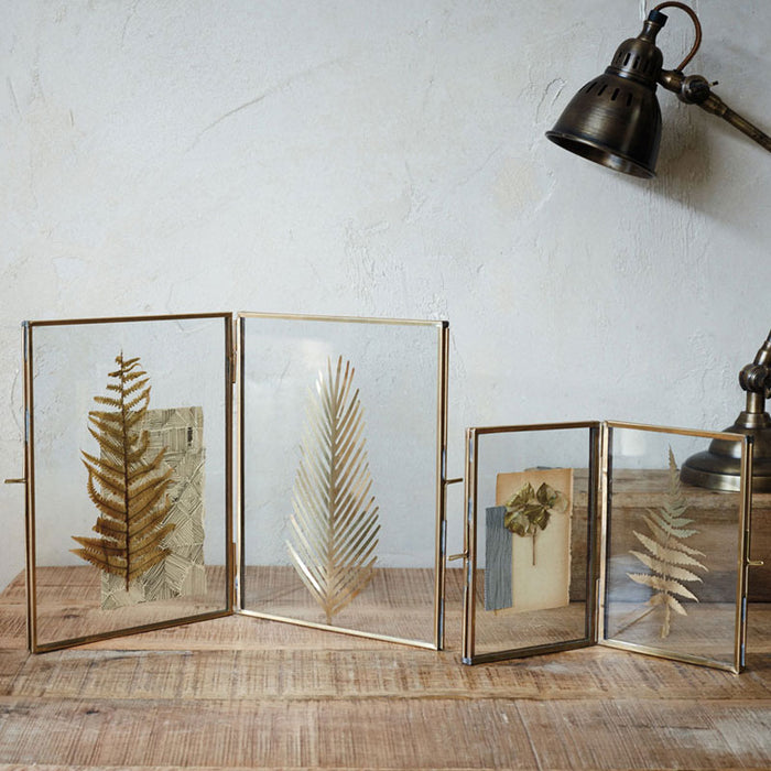Les panneaux à double charnière en verre sont idéaux pour permettre de placer des photographies ou d'autres souvenirs à l'intérieur de ces cadres pliants. Fabriqués en laiton antique et soudés à la main, ces jolis cadres sont très populaires. Choisissez parmi deux tailles standard. Convient uniquement à l'orientation portrait.