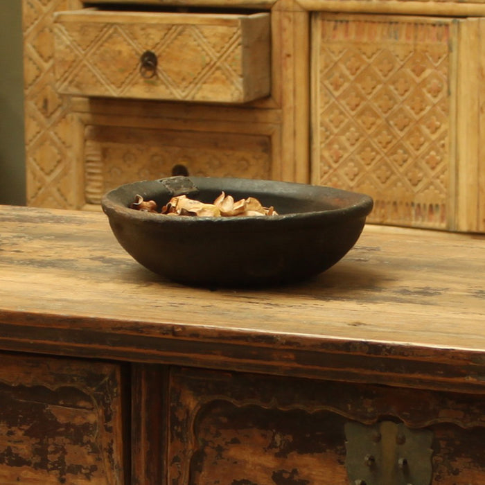 Ces vieux bols peu profonds sont fabriqués à partir de saule et proviennent de la frontière de la province du Qinghai et du Tibet. Ils auraient été utilisés pour la nourriture et chacun a un bord extérieur épais et une magnifique patine résultant d’années d’utilisation. Idéal comme coupes de fruits ou tout simplement pour la décoration. Notez que chaque bol est individuel, donc les tailles et les styles varient légèrement. Veuillez nous contacter si vous souhaitez des détails sur notre stock actuel.