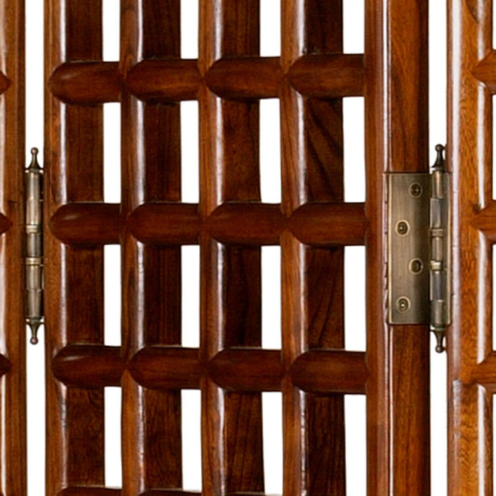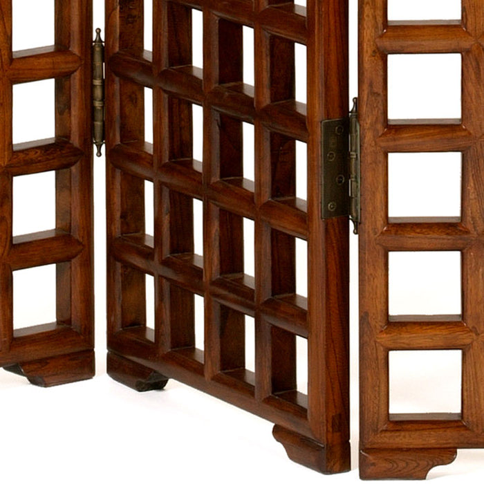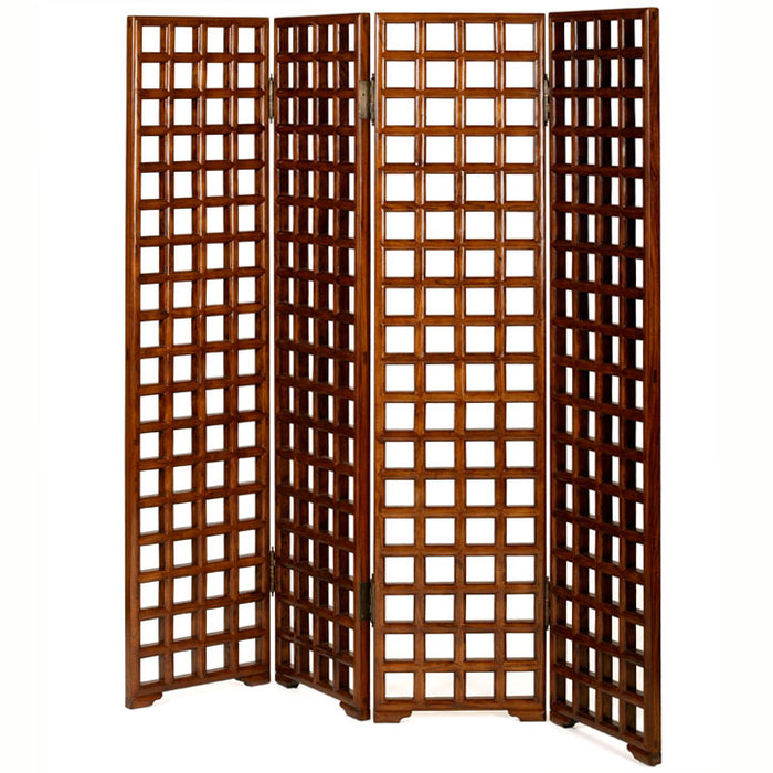Ce paravent en treillis simple et magnifiquement conçu au fini orme chaleureux est composé de quatre panneaux à charnières. Chacun est réalisé avec des joints à tenon et mortaise, les deux côtés étant biseautés. Il fonctionne parfaitement comme séparateur de pièce dans un salon ou tout simplement comme pièce maîtresse dans le coin d'une pièce. Les Chinois ont très tôt utilisé des paravents décoratifs - laqués et peints ou sculptés - comme moyen de garantir l'intimité. Alors que les modèles ultérieurs avaient tendance à être très ornés et fortement sculptés, des modèles plus sobres comme celui-ci étaient populaires sous la dynastie Ming.