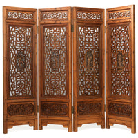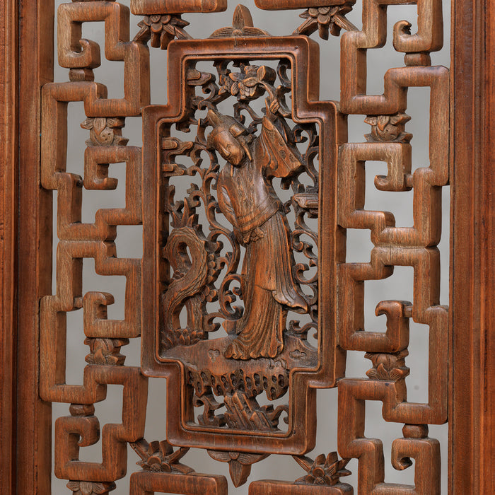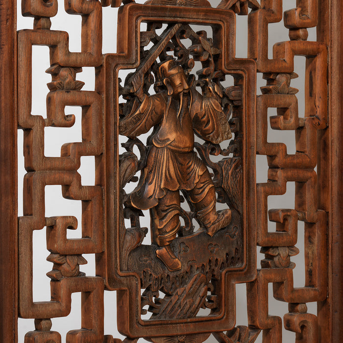 Paravent Antique Chinois avec Personnages Sculptés