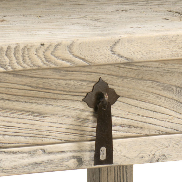 Cette jolie petite table, dotée d'un seul tiroir en haut et d'une étagère en bas, n'est pas sans rappeler les tables à thé chinoises qui seraient placées entre une paire de chaises pour servir du thé ou autre rafraîchissement. Notre version mise à jour, avec une belle finition naturelle mettant en valeur le grain profond du bois d'orme, fonctionne bien comme table d'appoint ou à côté d'un lit. Les pieds en forme de « sabot de cheval » ajoutent un élément supplémentaire au style chinois classique.
