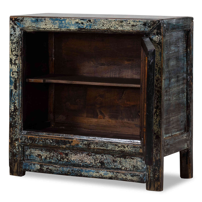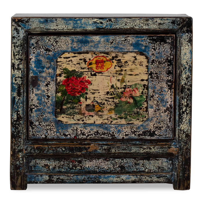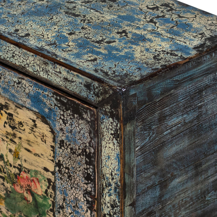 Crackled Blue Cabinet with Flowers