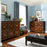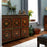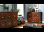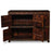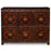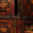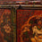 Sur le deuxième meuble, les trois panneaux supérieurs représentent les « Bouddhas des trois temps » (passé, présent et futur), chacun tenant un fruit. Il s'agit très probablement d'une pêche, d'une grenade et d'un citron, connus sous le nom de « trois fruits de bénédictions » et représentant le bonheur, la longévité et la richesse.