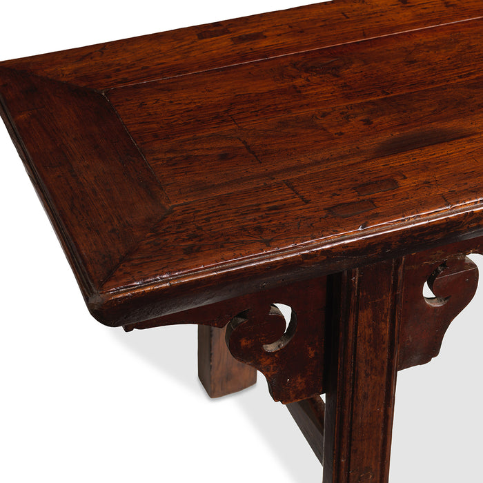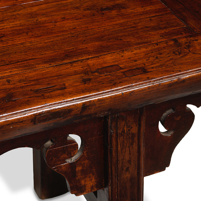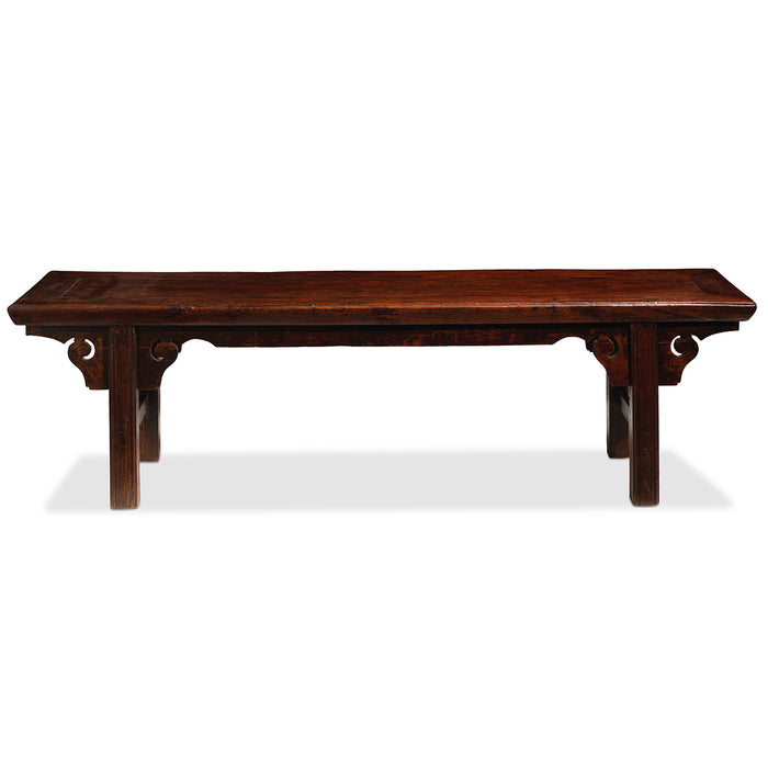 This elegant Chinese antique bench dates from around 1880 and originates from Hebei province. Crafted from solid hardwood, it has a beautifully long and balanced silhouette, defined by its gently softened edges and warm, rich patina developed through decades of use.