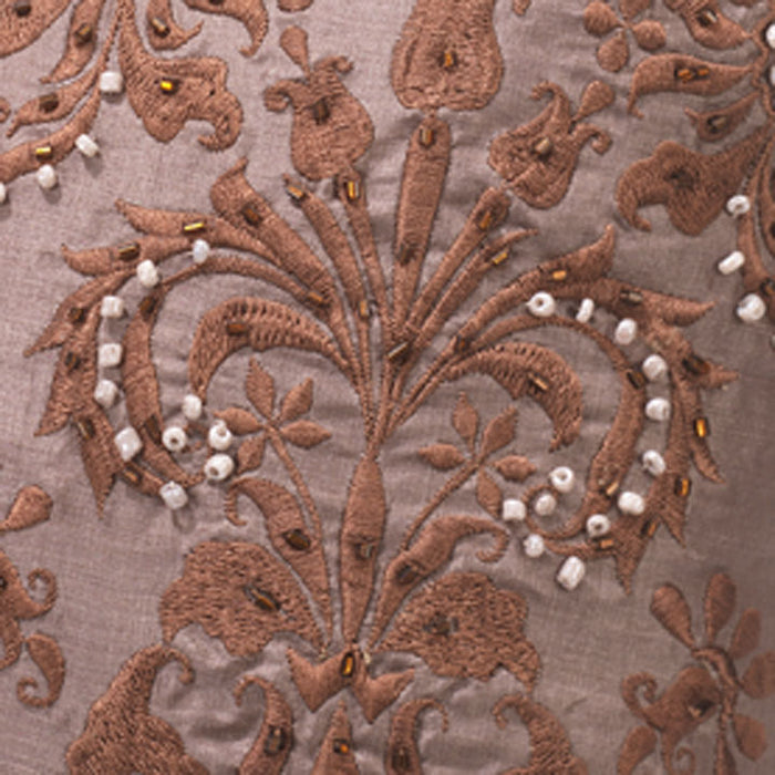 Coussin en perles de soie de couleur marron. 100% soie. Rembourrage de coussin inclus. Nettoyage à sec uniquement.