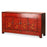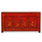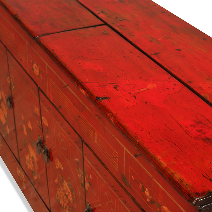 This captivating sideboard boasts a vibrant red lacquer finish and striking geometric paintings - features commonly seen on cabinets produced in China's northeast 'Dongbei' region. In addition to providing storage space for valuable or everyday items, these intricately painted sideboards were also used as home altars for honouring ancestors. What sets this particular sideboard apart is its two removable half board panels, an original detail not normally maintained during restoration.