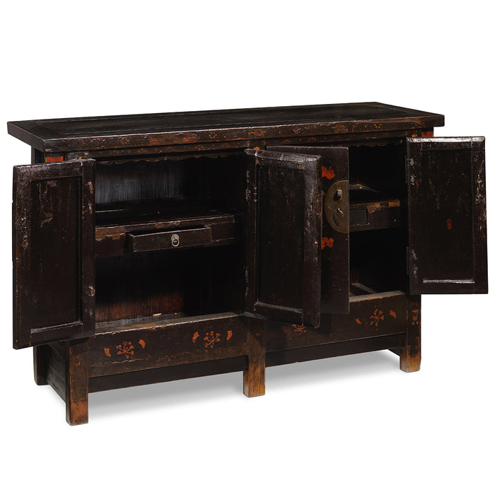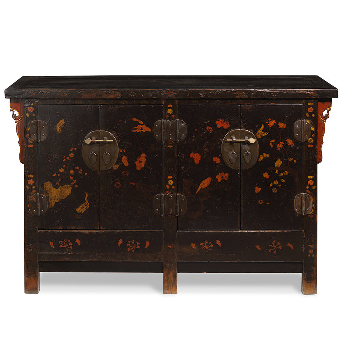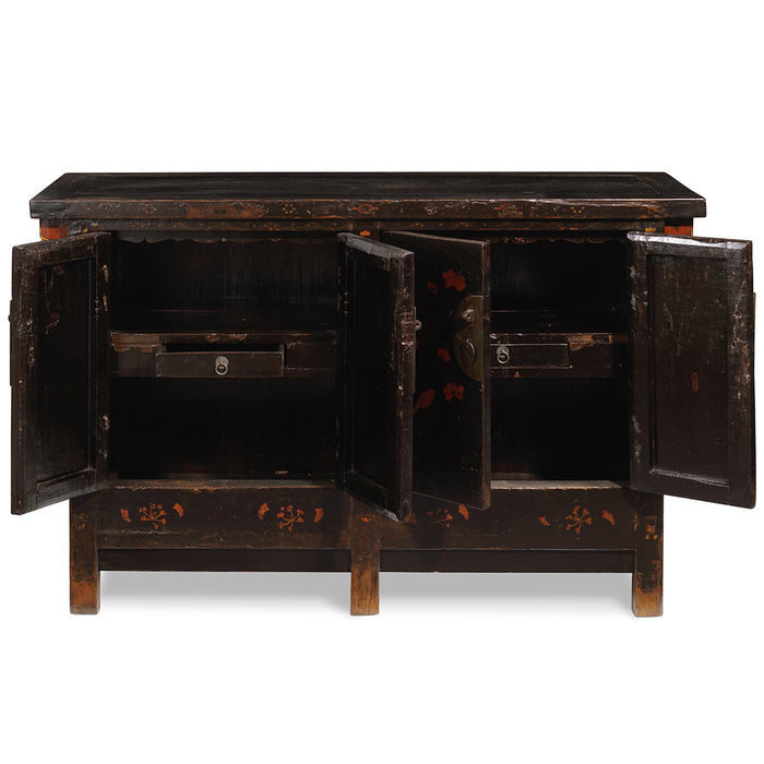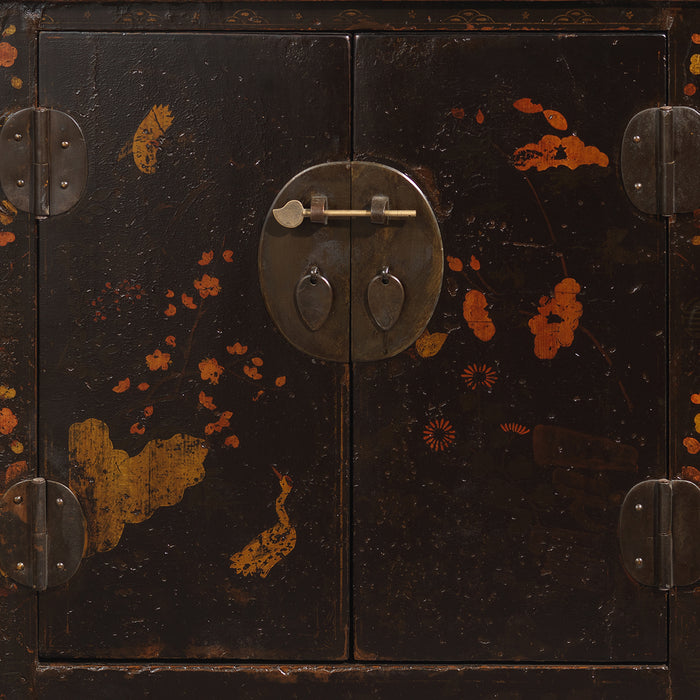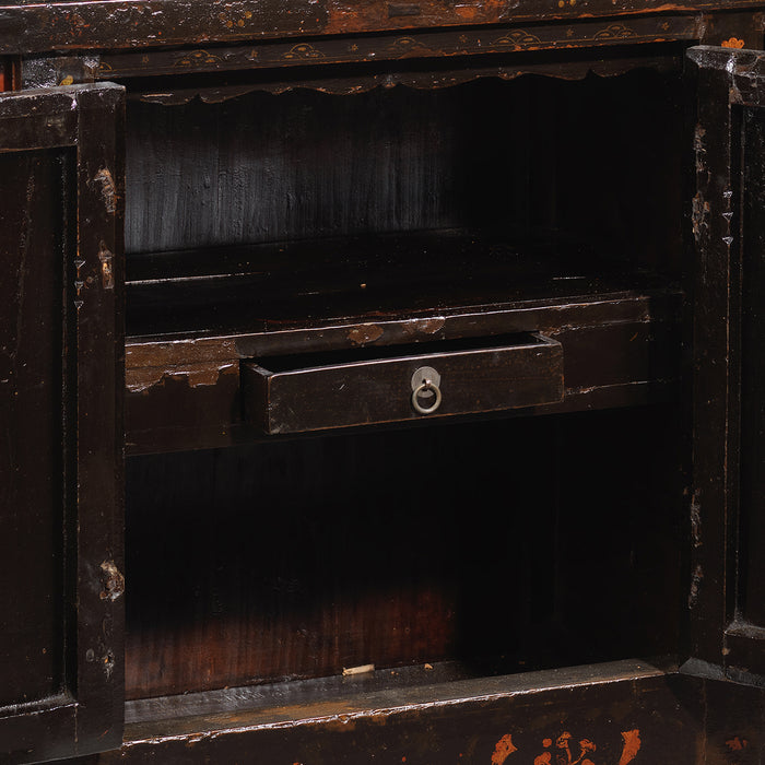 Today, this exceptional piece would work beautifully as a sideboard in a dining room, as a statement storage cabinet in a hallway, or as a boldly decorative element in a living space. Its deep lacquer tones and painted details make it a perfect addition to both traditional and contemporary interiors, offering not only functional storage but also a captivating piece of Chinese folk art.