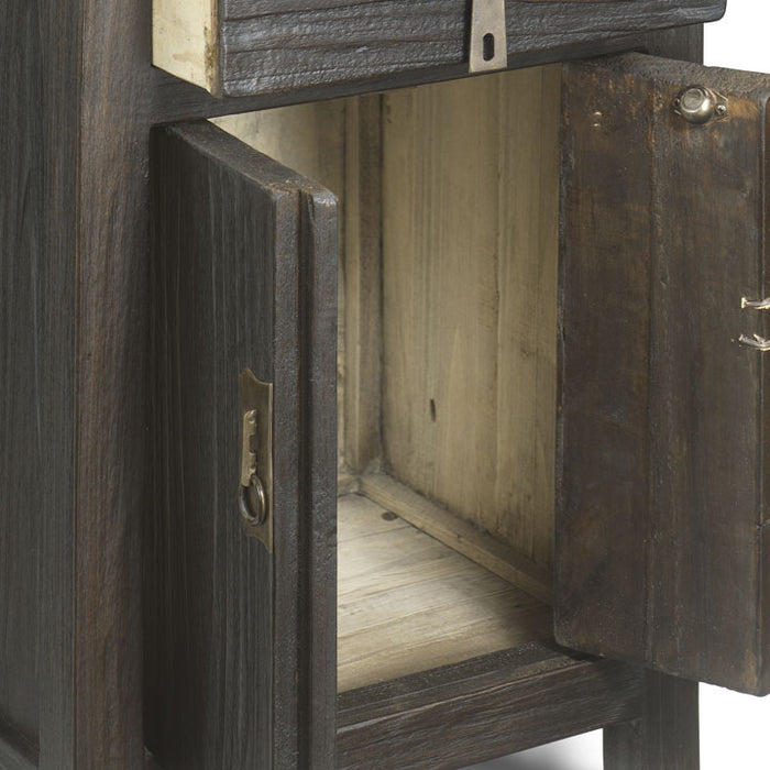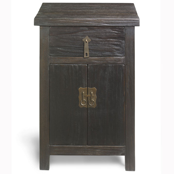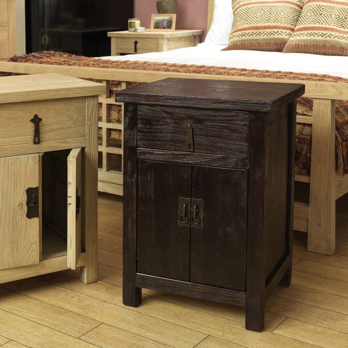 Made from solid poplar wood and in a lovely, dark chocolate finish, this little cabinet is ideal next to a bed or as a lamp table. Simple in style, with a single drawer above doors that fit directly into the cabinet frames. The wood itself has a beautiful, deep grain and the chocolate colour is complemented by brass hardware.